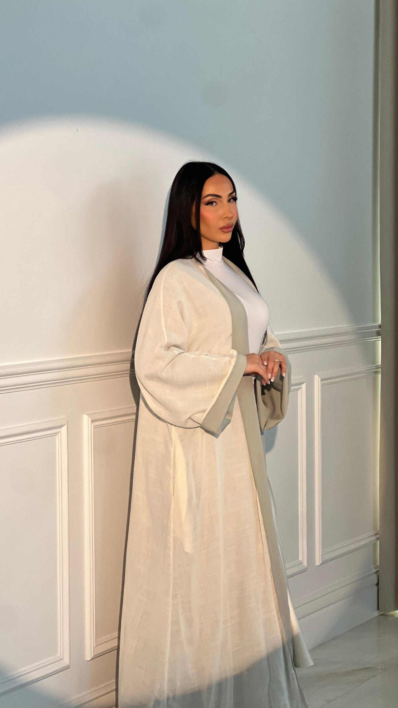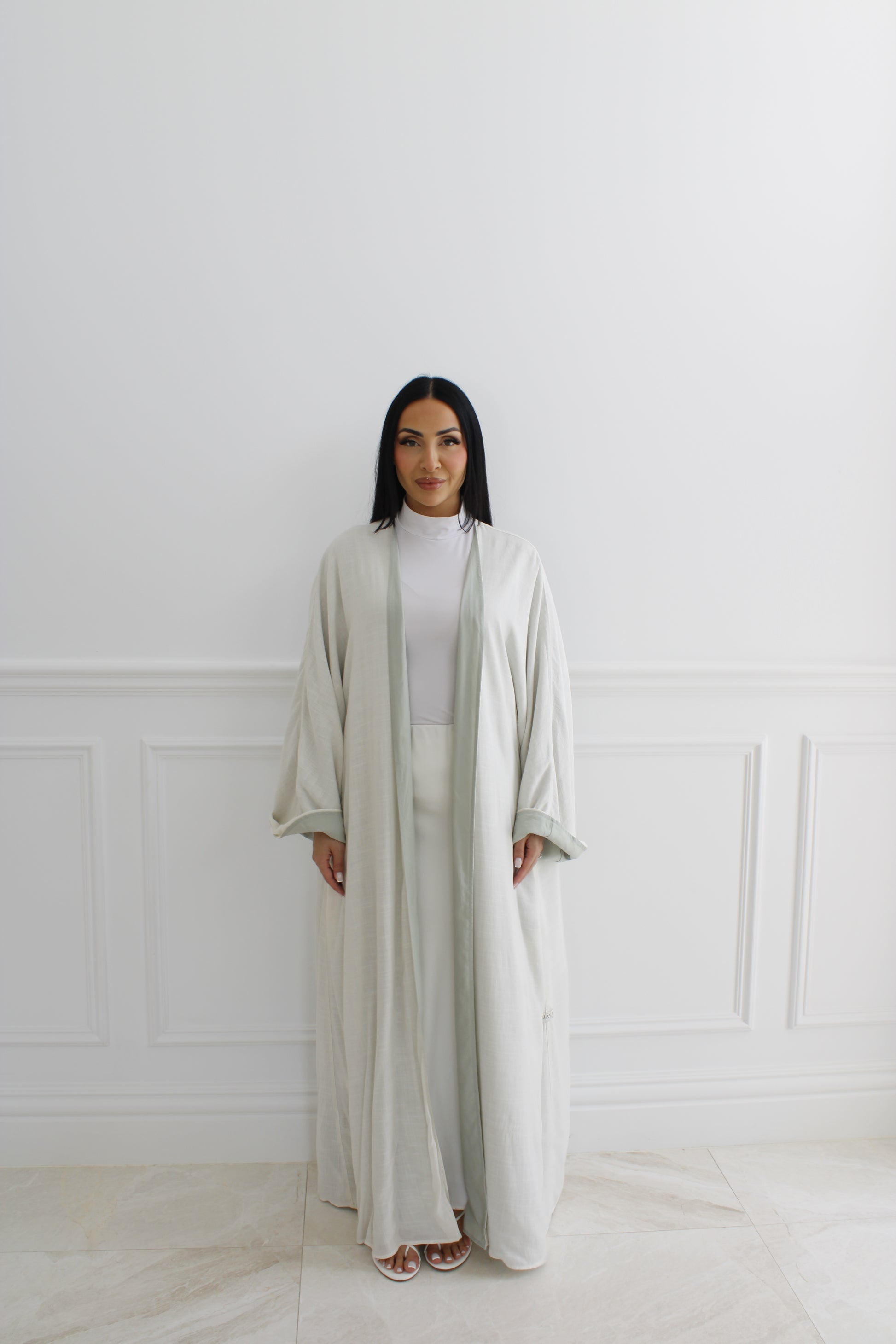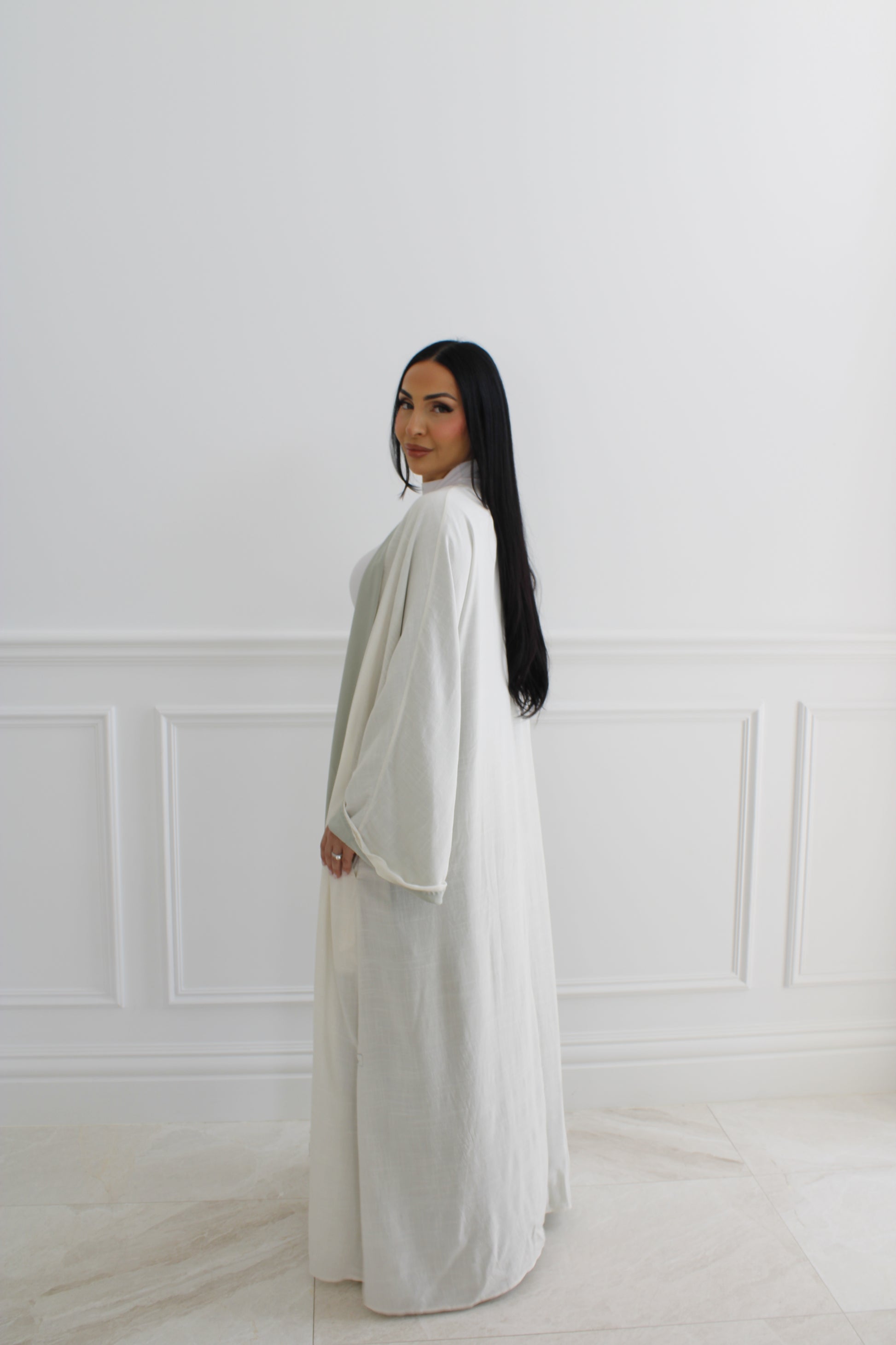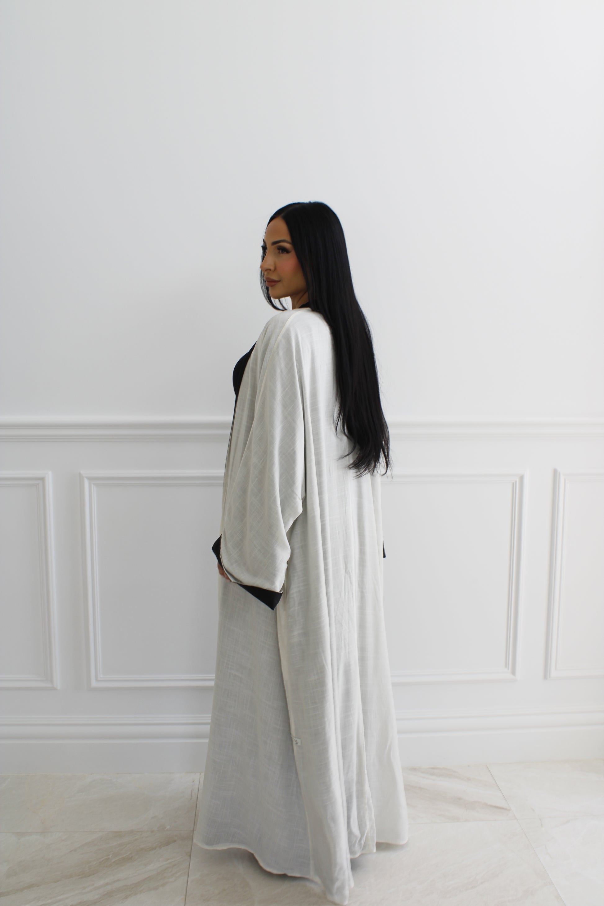Introducing MILAN, a versatile double-sided abaya that combines the lightweight comfort of linen and the luxurious elegance of tencel.