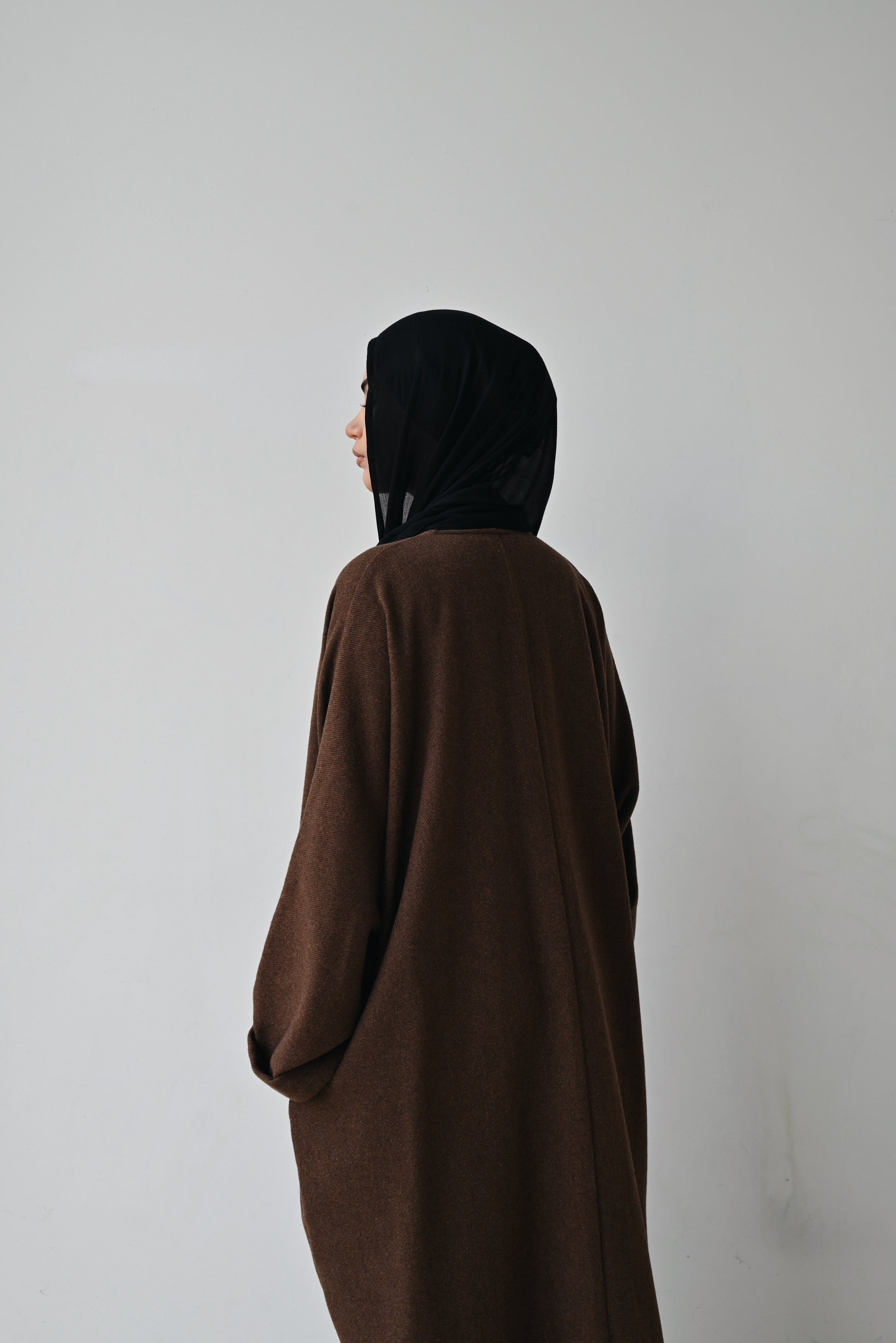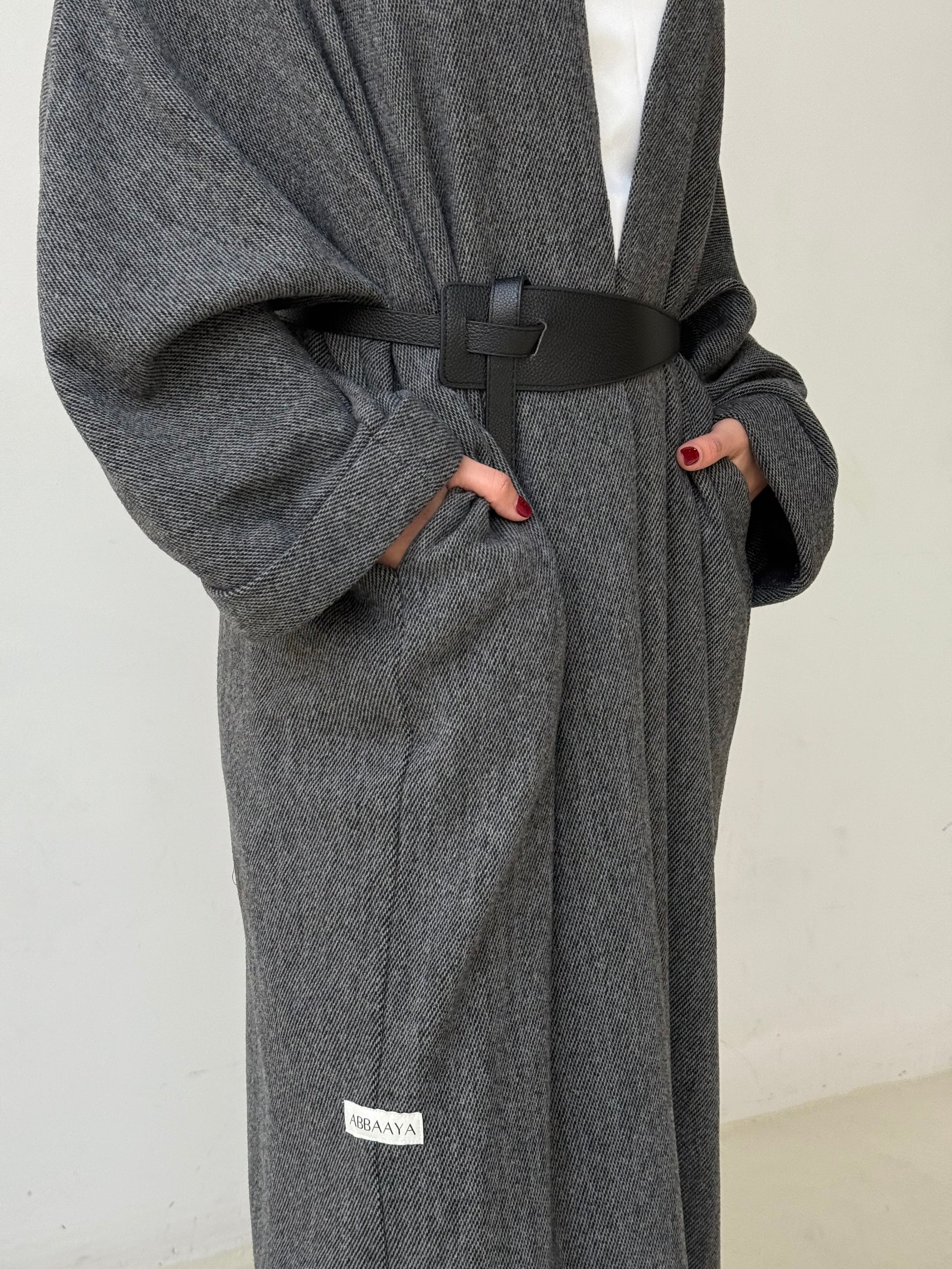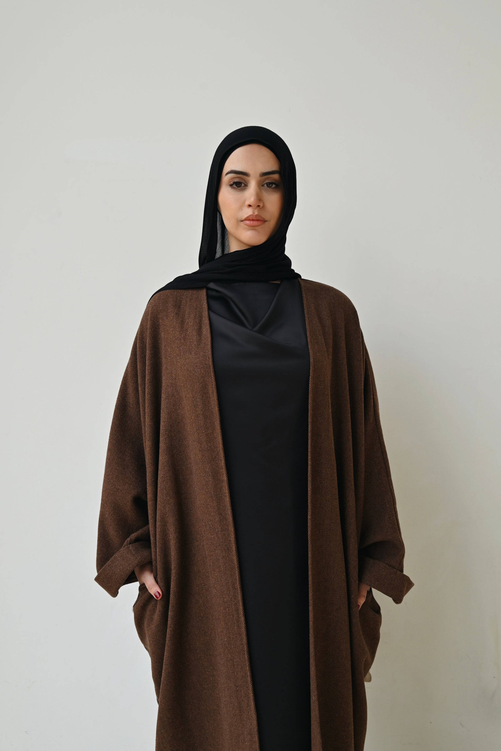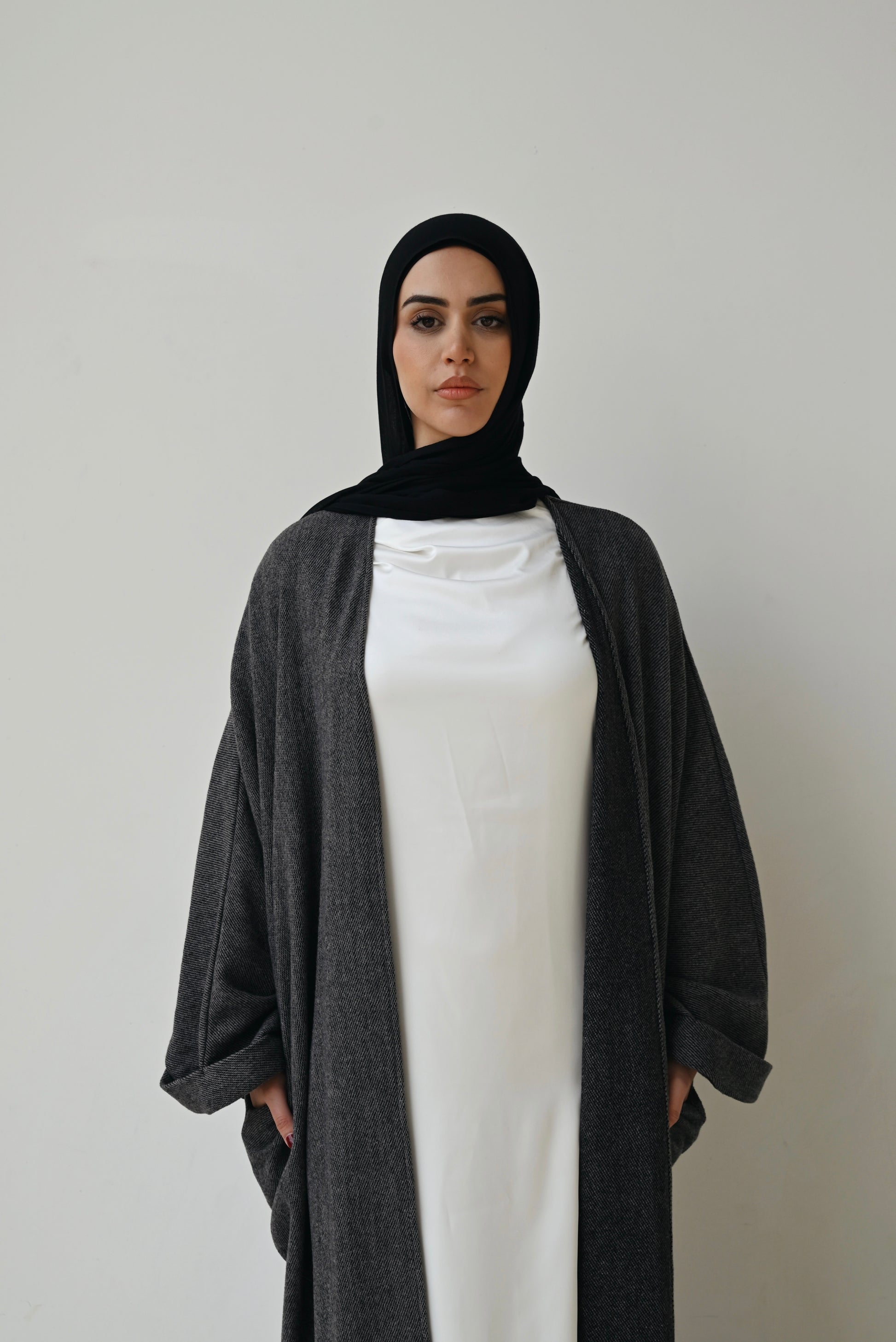 Its batwing sleeves, open front, and relaxed structure make it the ultimate winter layer. Crafted with intention and refined to perfection. This is a signature ABBAAYA staple.