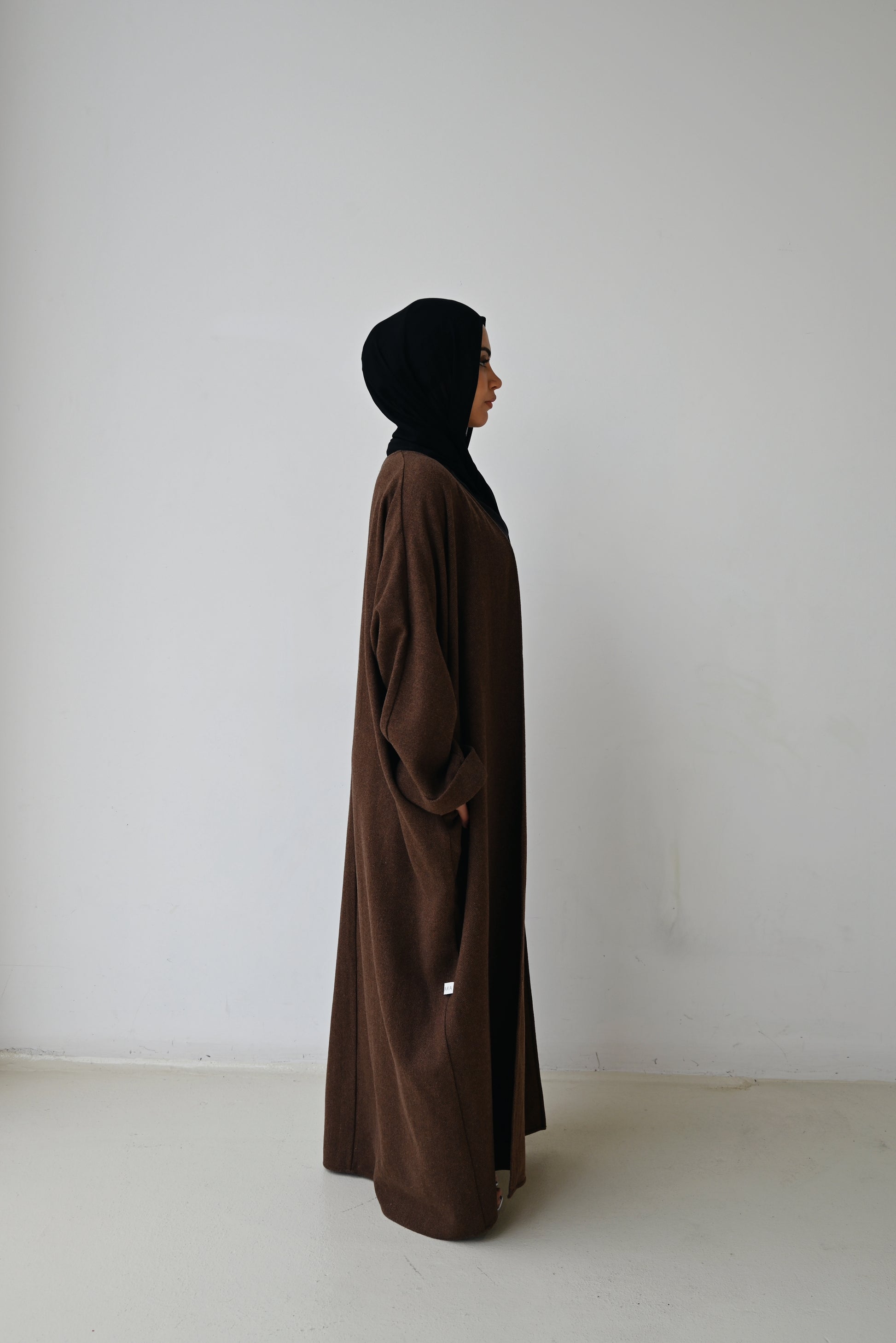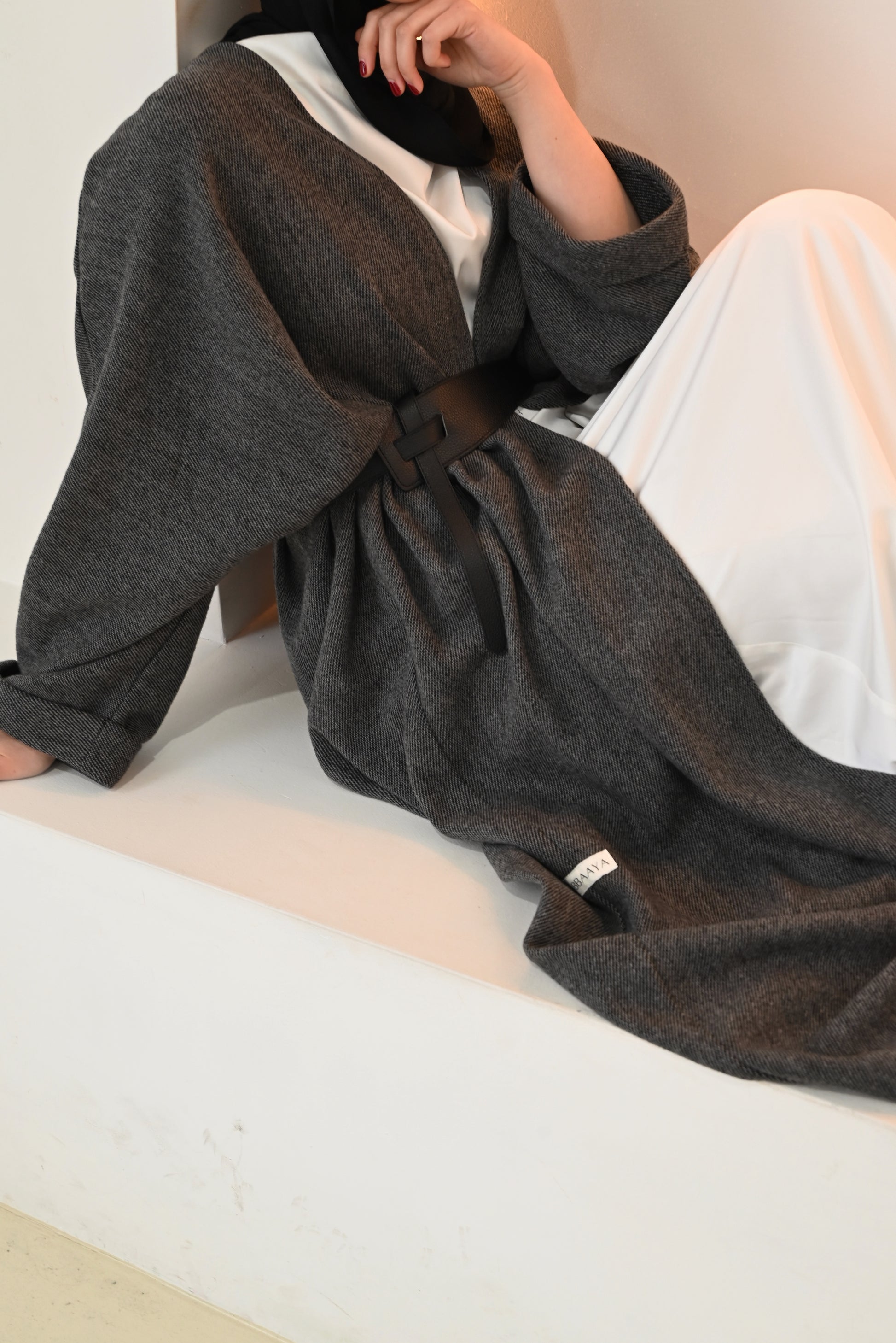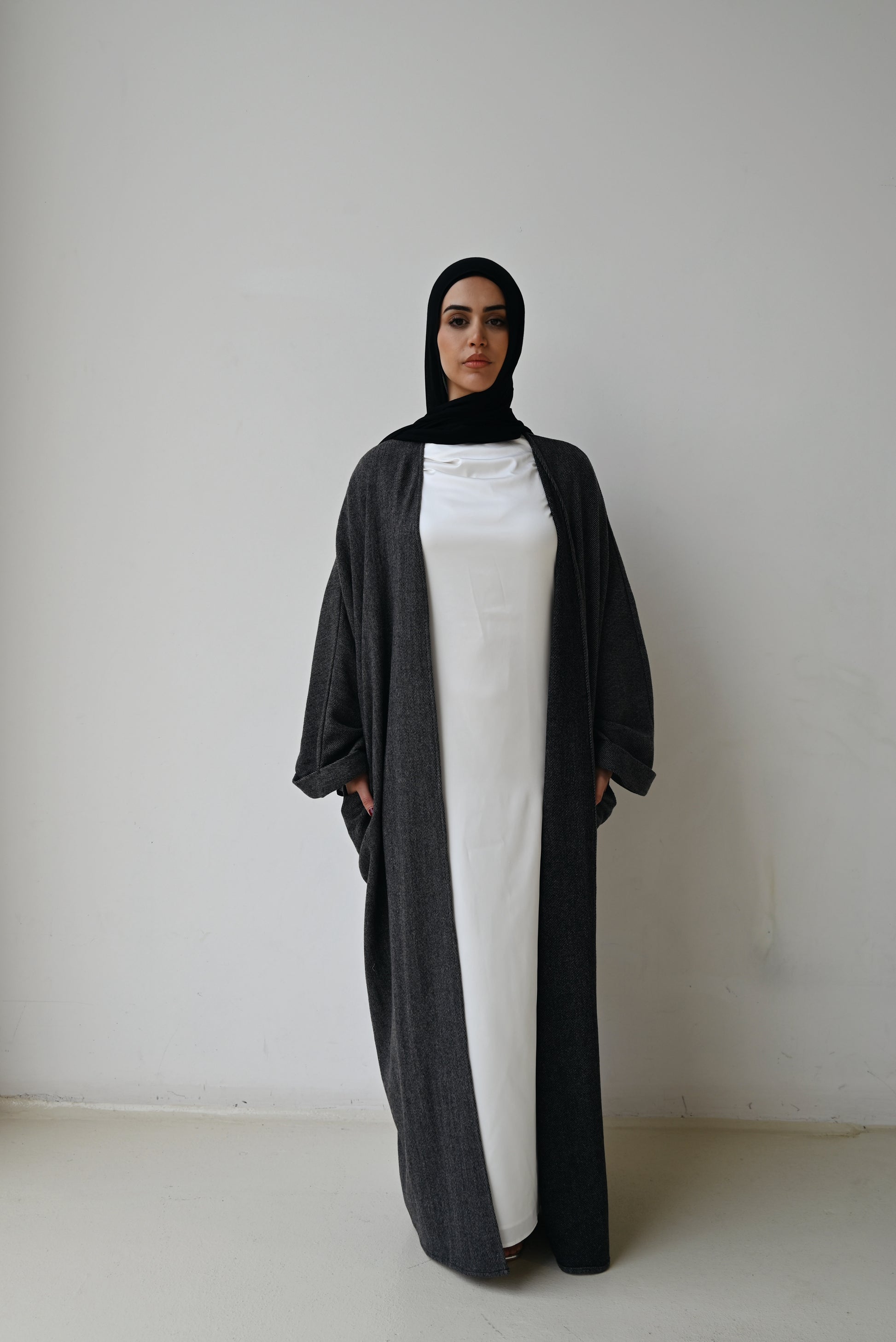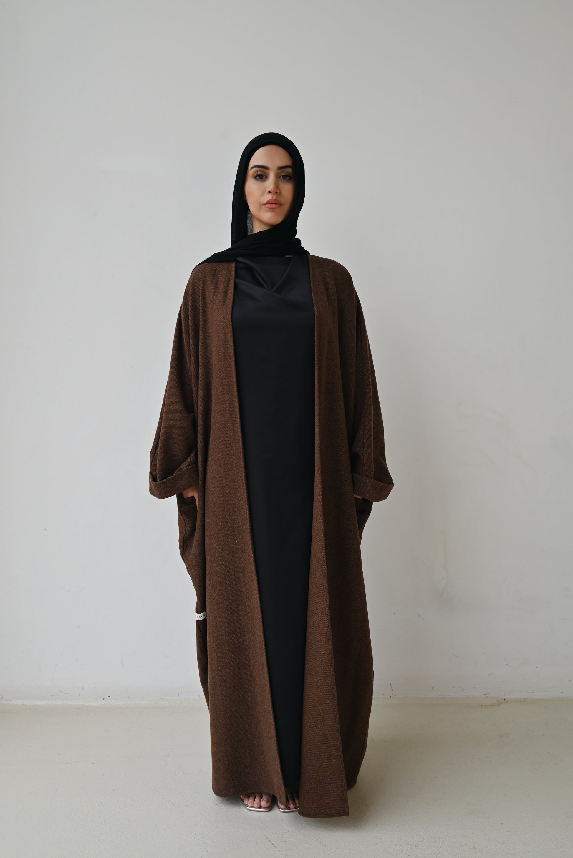 Its batwing sleeves, open front, and relaxed structure make it the ultimate winter layer. Crafted with intention and refined to perfection. This is a signature ABBAAYA staple.